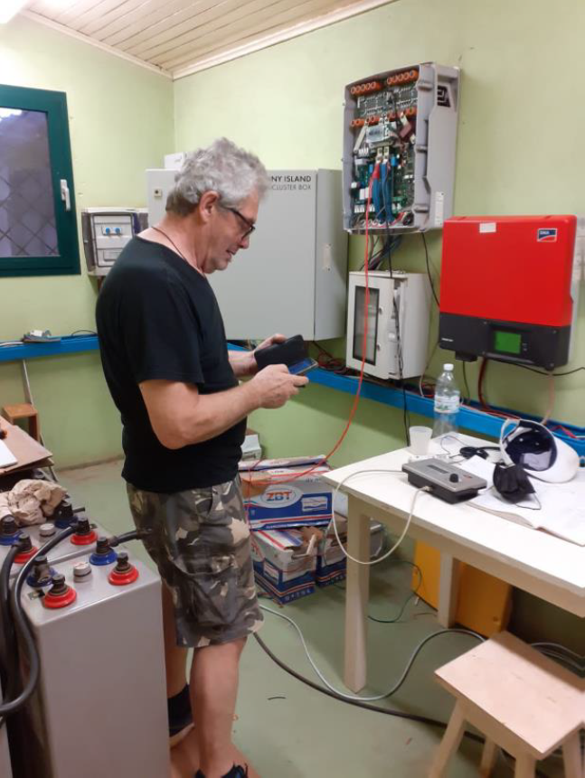 In arte sono “Mago G” e “Super Mario”. Nomi azzeccatissimi che i membri dell’Associazione “Amici per il Centrafrica” hanno dato loro. E capisci perché. Iniziano il loro lavoro prima che le mamme accedano al dispensario “Mama Carla” con i loro bambini e sono gli ultimi a lasciarlo la sera, dopo aver effettuato l’ultimo controllo al sistema fotovoltaico e al livello dell’acqua nelle cisterne di riserva da 1000 L, perché l’acqua sia disponibile il giorno dopo alla riapertura puntuale alle ore 7. Vedendoli lavorare, mi sono accorta che non c’è stato un solo problema che non abbiano saputo risolvere o perlomeno dare un’indicazione ben precisa. Mi sono detta che queste due persone eccezionali dovevano essere conosciute, perché attirino altri a fare come loro. Con lo stesso entusiasmo e la stessa dedizione. La stessa da anni. Così in maniera molto spontanea hanno risposto ad alcune mie domande. La prima delle quali presentarsi.